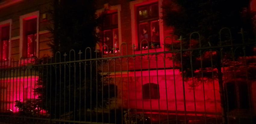 O godzinie 17.00 nasze przedszkole zostało oświetlone na kolor czerwony w ramach Kampanii Dzieciństwo bez Przemocy. Dobre dzieciństwo daje dziecku moc. Wspieramy dzieciństwo mocy bez przemocy.