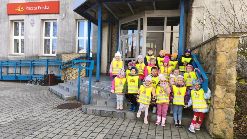 W ramach realizowanego tematu Jak przekazujemy informacje grupa Żabki wybrała się na pocztę. Dzieci miały okazję poznać zawód listonosza oraz dowiedzieć się, jak wygląda jego codzienna praca. Pani z poczty opowiedziała nam, jak nadaje się paczki, jak są przekazywane oraz jaką drogę pokonuje list, zanim trafi do adresata. Mogliśmy również zajrzeć do sortowni, gdzie listy i paczki są odpowiednio przygotowywane do wysyłki, to było naprawdę fascynujące! Przy okazji naszej wycieczki odwiedziliśmy także dworzec kolejowy, który okazał się świetnym uzupełnieniem tematu o różnych sposobach przekazywania i transportowania informacji.