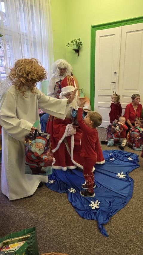 W dniu 02.12 (wtorek) odbyły się zajęcia koleżeńskie, które prowadziła pani Karolina Hałas. Były to zajęcia plastyczne o tematyce "Prezenty dla Świętego Mikołaja", podczas których dzieci poznały legendę o Świętym Mikołaju, dzieliły wyrazy na sylaby tupiąc, klaszcząc i jeżdżąc przy tym sa-nia-mi. Ćwiczyły celność wrzucając "prezenty do komina", a na koniec wykorzystując technikę stemplowania przedszkolaki wykonały piękne prezenty dla Świętego Mikołaja.