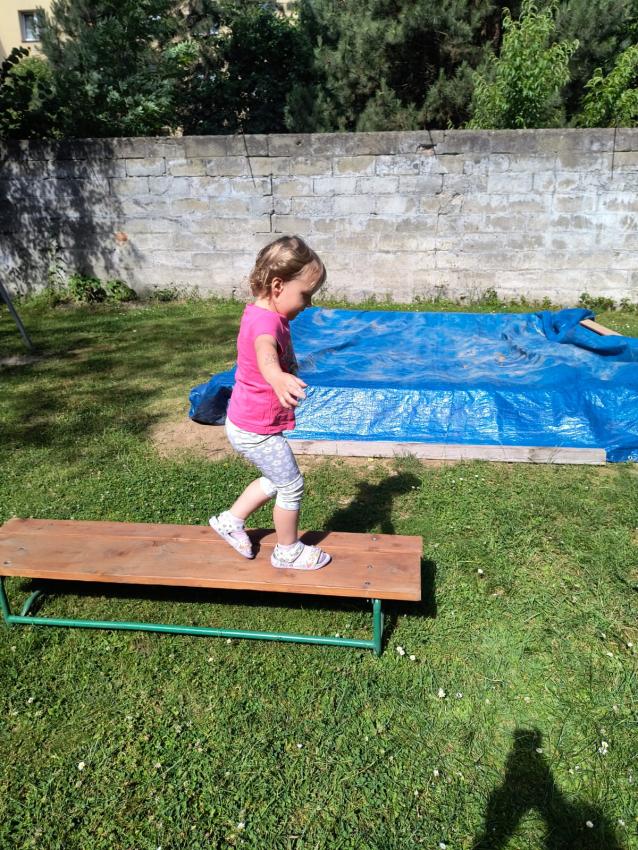 W dniu dzisiejszym na ogrodzie przedszkolnym został stworzony dla dzieci tor przeszkód, z którego dzieci korzystały z radością, mimo że momentami było ciężko przedostać się np. przez kartonowy tunel, bądź też stanąć na szyszkach, ale wszyscy dali radę mając przy tym świetną zabawę