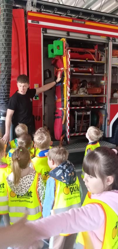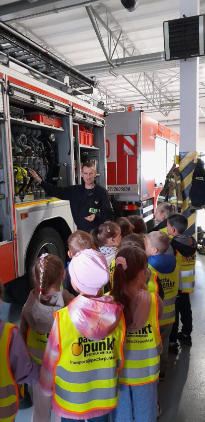 Dnia 27.05 dzieci z oddziału lll ,,Żyrafy" wybrały się na wycieczkę do Straży Pożarnej. Dzięki życzliwości Panów Strażaków przedszkolaki mogły z bliska obejrzeć samochody i sprzęt pożarniczy. W trakcie rozmowy ze strażakiem dowiedziały się dużo o trudnej, odpowiedzialnej i niebezpiecznej pracy strażaków. Z wycieczki przedszkolaki wróciły pełne niezapomnianych wrażeń wspomnień.