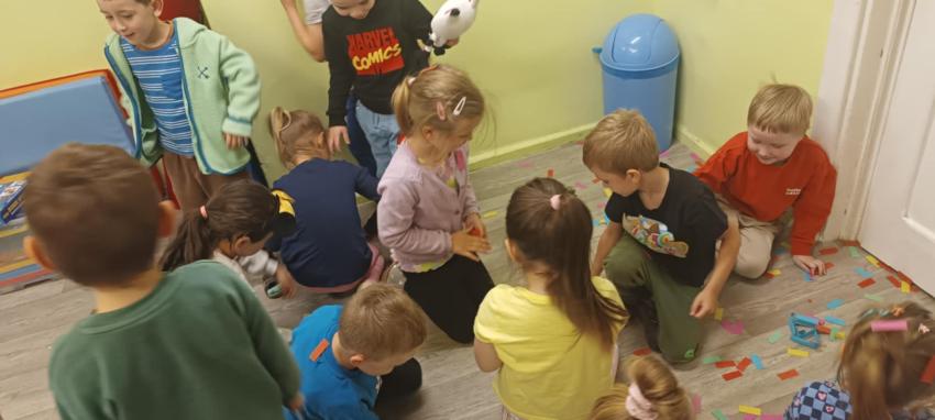 Zwieńczeniem naszych zajęć było wykonanie pracy plastycznej w postaci witrażu - balona. Elementami do jego tworzenia posłużył głośny wystrzał z Confetti.