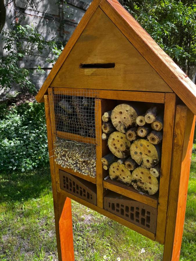 W naszym przedszkolnym ogrodzie stanął hotelik dla owadów wykonany przez naszego Pana konserwatora - Pana Pawła.