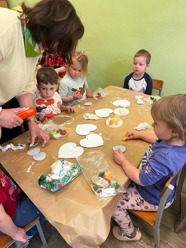 12.05.2025 r. dzieci z grupy Żyrafek uczestniczyły w warsztatach plastycznych prowadzonych przez terapeutkę oraz uczestników Warsztatu Terapii Zajęciowej im. Jana Pawła II na ul. Hodowlanej. Przedszkolaki zgodnie ze wskazówkami prowadzącej wykonały przepiękne dekoracje, a praca ta dała im dużo radości i satysfakcji.