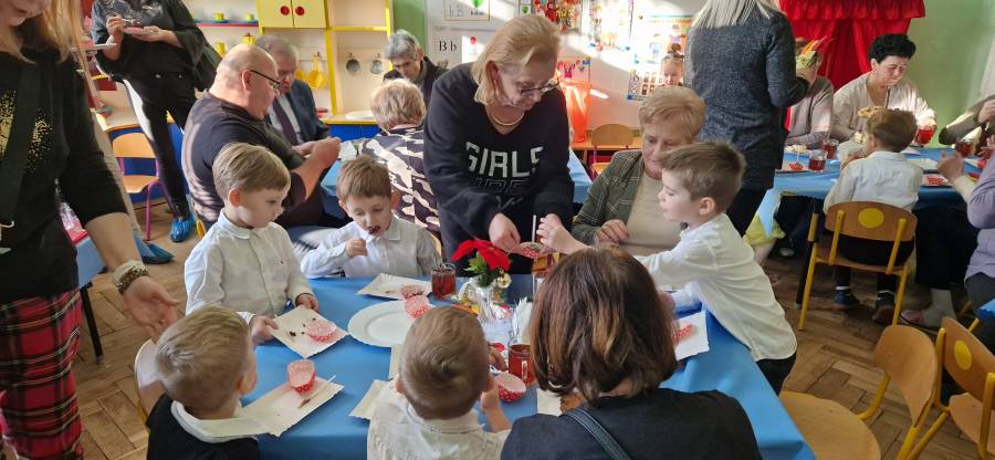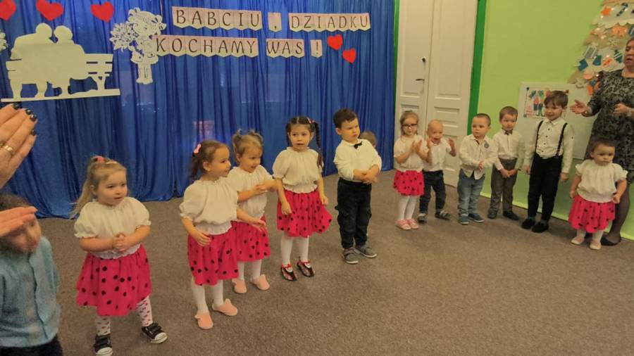 Babci i Dziadziu to słowa które kojarzą się z miłością, ciepłem. W dniu dzisiejszym najmłodsze przedszkolaki zaprosiły swoich ukochanych dziadków na uroczystość z tej okazji. Dzieci z niecierpliwością wyczekiwały zaproszonych gości. Prezentowały swoje umiejętności artystyczne, zaprosiły dziadków do wspólnej zabawy, oraz na słodki poczęstunek. To była naprawdę wyjątkowa uroczystość , pełna uśmiechu, radości i dumy. Szczęśliwe i rozpromienione twarze babć i dziadków dały wyraz tego, jak ważne są takie spotkania i chwile spędzone wspólnie z wnukami.
