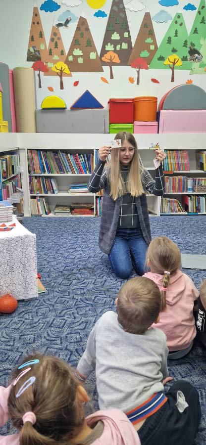 Dnia 15.11 starszaki udały się do Miejskiej Biblioteki Publicznej im. Juliusza Słowackiego na zajęcia ,,Poznajemy bibliotekę". Dla niektórych była to pierwsza taka wizyta. Celem zajęć było -zapoznanie z biblioteką i jej rolą, zapoznanie dzieci z zasadami korzystania z biblioteki, rozbudzanie zainteresowań czytelniczych wśród dzieci, zachęcanie do wypożyczania książek . Utrwaliły pojęcie -biblioteka, bibliotekarz, księgarnia, księgarz.