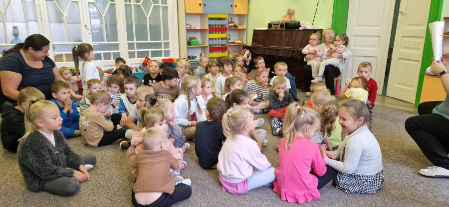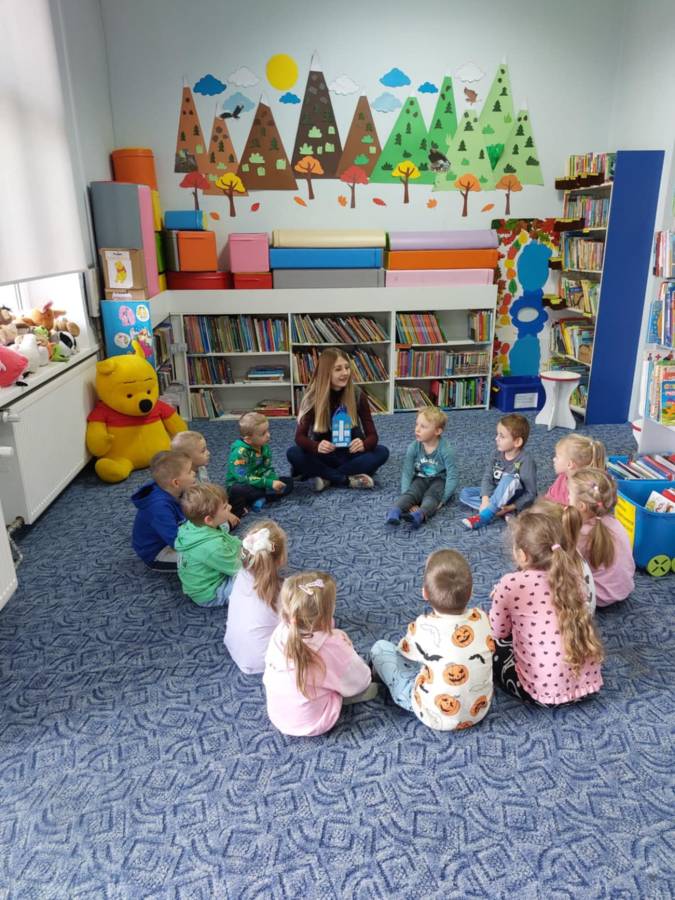 W dniu 15.10.2024 dzieci z oddziału II uczestniczyły w zajęciach bibliotecznych w Miejskiej Bibliotece Publicznej. Temat zajęć: " Poznajemy bibliotekę". Przedszkolaki zapoznały się z zasadami obowiązującymi w bibliotece, wiedzą jak wypożyczać książeczki, poznały zawód bibliotekarza, pisarza. Panie bibliotekarki zachęcały dzieci do częstego korzystania z biblioteki i codziennego czytania książek.
