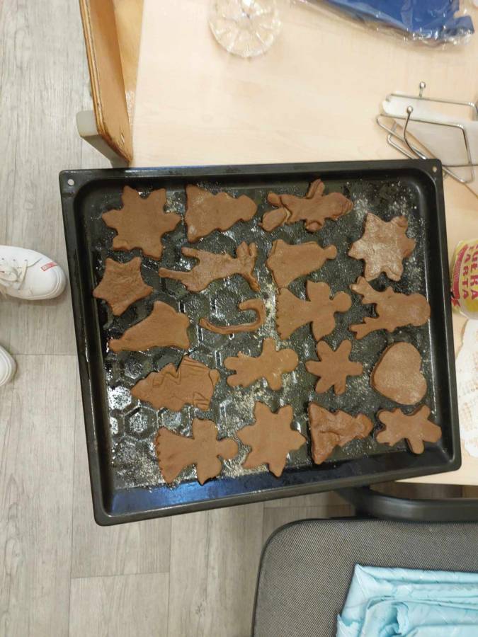 "Pieczemy świąteczne pierniczki" warsztaty kulinarne w naszym przedszkolu. Dzieci z niewielką pomocą piekły, a następnie ozdabiały pierniczki. Wszędzie unosił się cudowny zapach cynamonu, miodu, przypraw korzennych przypominających o zbliżających się świętach. Zabawa była doskonała i sprawiła przedszkolakom wiele radości. Pięknie przyozdobione pierniki mogą stać się wspaniałą dekoracją choinki,stroika czy świątecznego stołu.A ich intensywny aromat może towarzyszyć przez całe Boże Narodzenie.