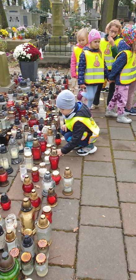 Dzieci z oddziału III uczestniczyły w wycieczce na Stary Cmentarz w Tarnowie, złożyły hołd poległym bohaterom, którzy walczyli za naszą Ojczyznę. Przedszkolaki zapaliły znicze oddając hołd żołnierzom.Była to doskonała lekcja wychowania obywatelskiego i patriotycznego, która uczy od najmłodszych lat szacunku dla zmarłych, odpowiedniego zachowania się na cmentarzach oraz obowiązku dbania o cmentarze.