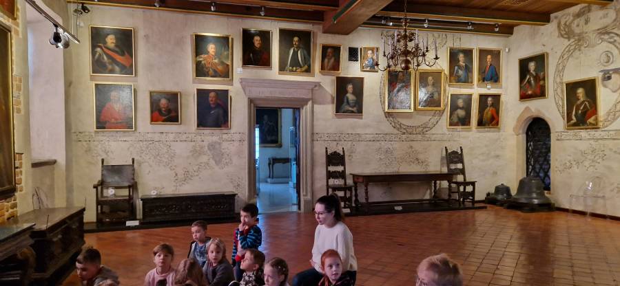 Dzieci z oddziału III dnia 7.11.2023 wzięły udział w zajęciach muzealnych w tarnowskim Ratuszu. Poznały salę portretową - rysowały portret koleżanki lub kolegi w złotej ramie.