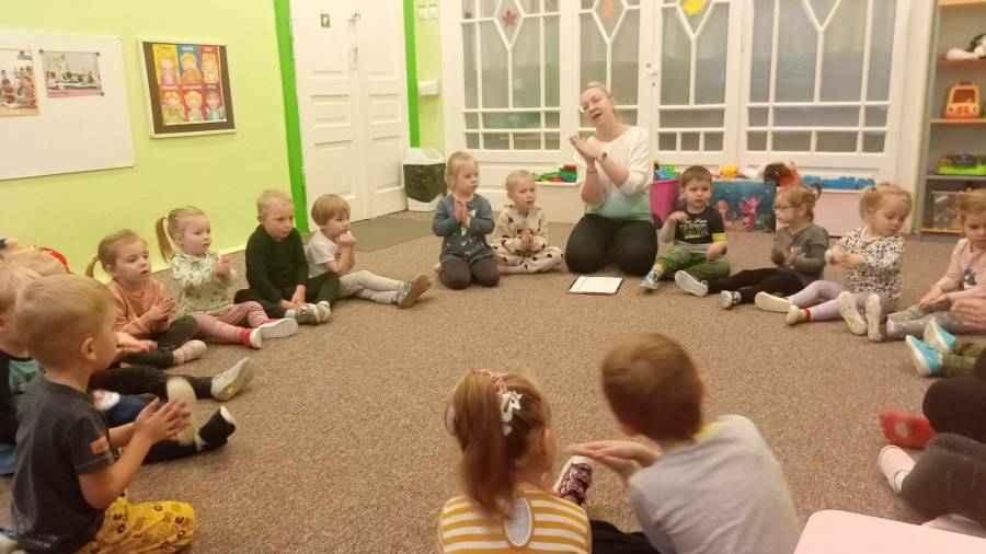 W październiku odbyły się kolejne zajęcia koleżeńskie. Podczas zajęć o "Pani Jesieni" dzieci rozwijały poczucie rytmu, odtwarzały rytmy za pomocą ruchu oraz przypominały kolory jesiennych liści oraz ich nazwy.