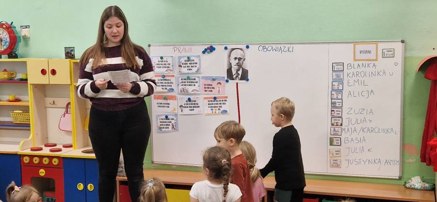 Międzynarodowy Dzień Praw Dziecka z UNICEF 2023. 20 listopada to szczególny dzień ? rocznica uchwalenia Konwencji o prawach dziecka. Jest to moment, w którym uwaga wszystkich kierowana jest na dzieci i ich prawa. Dzieci z naszego przedszkola obejrzały film edukacyjny w którym dowiedziały się o swoich prawach, a także obowiązkach. Po projekcji filmu wzięły udział w zajęciach na których poznały postać Janusza Korczaka, za pomocą przedmiotów np: termometr zgadywały do jakiego prawa on nawiązuje. Na koniec w ramach Międzynarodowego Dnia Praw Dziecka jako symbol solidarności ze wszystkimi dziećmi na świecie, również tymi, których prawa nie są przestrzegane zrobiliśmy zdjęcia z niebieskimi serduszkami.