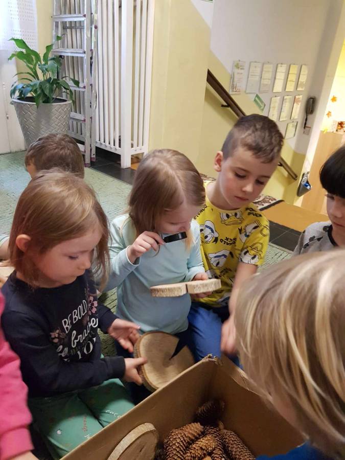 W dniu 27.09.2023r podczas kampanii edukacyjno-informacyjnej ?I Małopolski Dzień dla Klimatu? realizowanej w ramach projektu zintegrowanego LIFE-IP EKOMAŁOPOLSKA ?Wdrażanie Regionalnego Planu Działań dla Klimatu i Energii dla województwa małopolskiego? w naszym przedszkolu odbyło się spotkanie, w trakcie którego dzieci poznały życie drzew liściastych i iglastych.