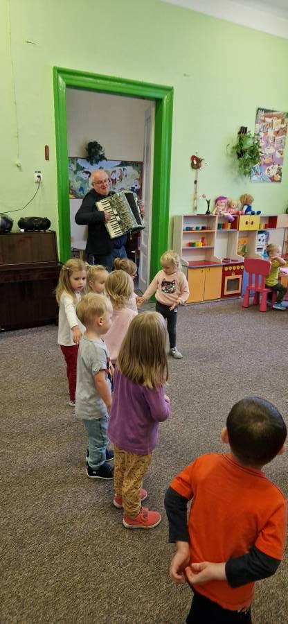 02.10.2023.10.2023 r. w naszym przedszkolu odbył się dzień muzyki. Z tej okazji zaprosiliśmy do nas gościa - dzieci poznały zawód muzyka, czym się zajmuje. Poznały wartości nut oraz brzmienie instrumentów: fletu, akordeonu i gitar- akustycznej, elektrycznej i basowej a także wspólnie tańczyli do piosenki "mam chusteczkę haftowaną" wykonywaną na akordeonie.