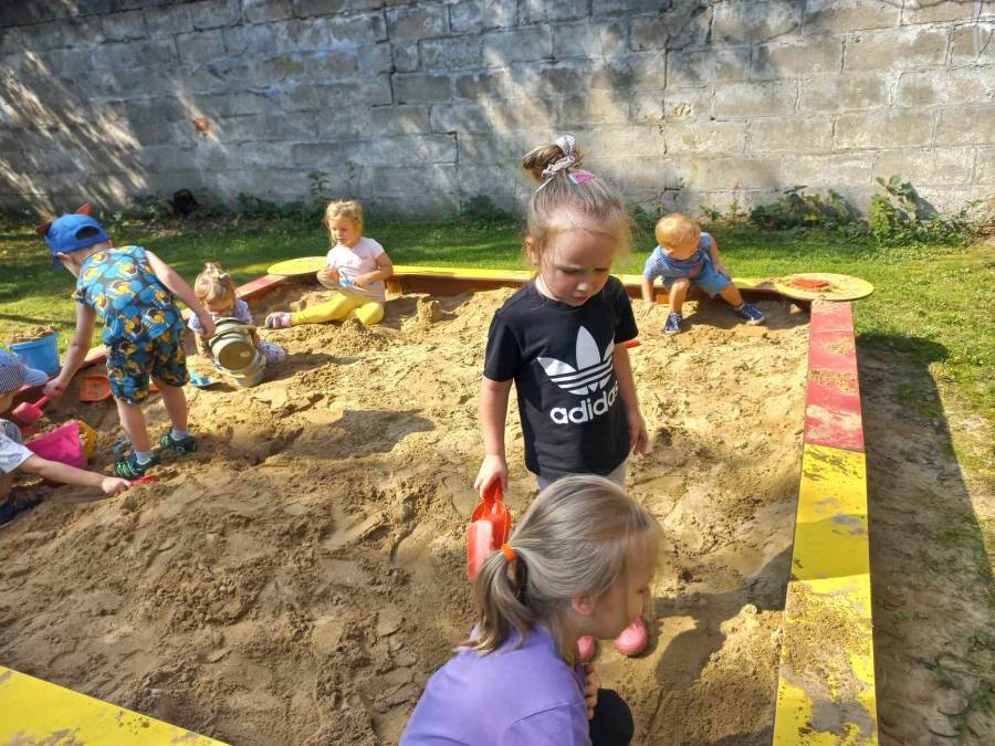 Zabawy maluszków w przedszkolnym ogrodzie.