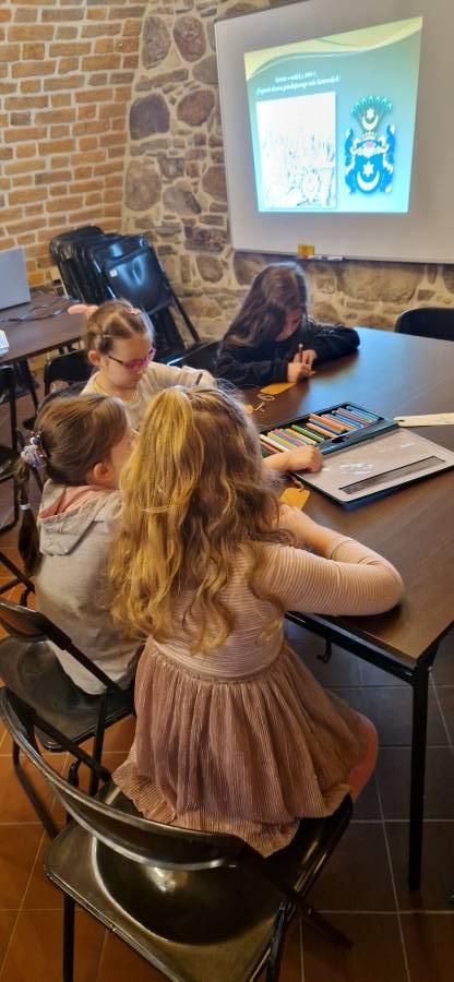 Historia Tarnowa i Ratusza - na ostatnich zajęciach, które odbyły się dnia 11.04.2023r w Sali edukacyjnej Ratusza dzieci obejrzały prezentację multimedialną na której mogły zobaczyć, jak wyglądał zamek, po którym dziś zostały tylko ruiny, jak kiedyś wyglądał Tarnów i dowiedzieć się kto go założył. Ostatnie zajęcia były okazją do świetnej zabawy przy konkurencji w układaniu puzzli. Przedszkolaki z oddziału III wykonały także pamiątkowe zakładki do książki.