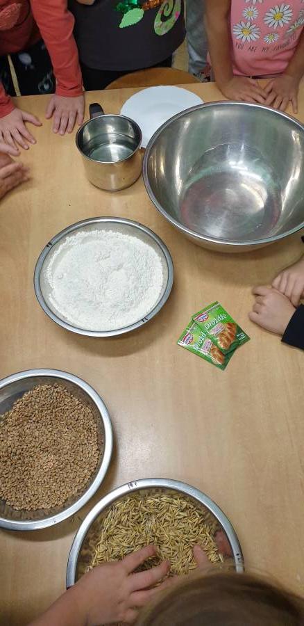 W ramach programu edukacyjnego "Skąd się biorą produkty ekologiczne" z okazji Światowego Dnia Chleba dzieci poznały ziarna zbóż, z których powstaje mąka. Piekły chleb poznając etapy jego wykonania. Wykonały kanapki z różnego rodzaju chleba uświadamiając sobie jak ważne i zdrowe jest spożywanie urozmaiconego pieczywa. Przygotowane przez dzieci kanapki mogli degustować rodzice.