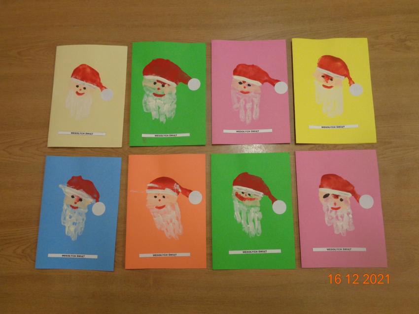 Dzieci wykonały kartki z życzeniami świątecznymi i