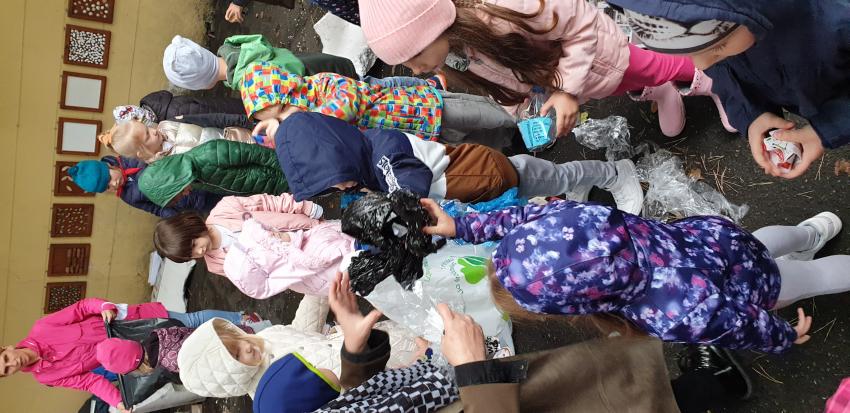 Dzieci z naszego przedszkola jak co roku wzięły udział w akcji Sprzątania Świata pod hasłem " Myślę, więc nie śmiecę".