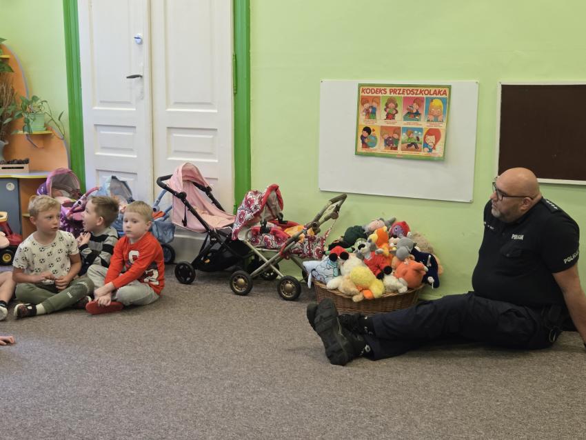 16.09.2025 nasze przedszkole odwiedził Policjant, który rozmawiał z dziećmi na temat bezpieczeństwa w ruchu drogowym, kontaktach z innymi osobami. Dzieci utrwaliły sobie numery alarmowe. Rozmawialiśmy jak ważną rolę spełniają elementy odblaskowe.