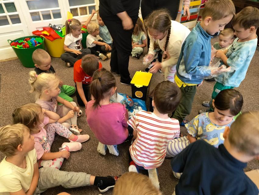W dniu 19.09.2025 przedszkolaki z naszego przedszkola brały udział w akcji "Sprzątanie świata" Utrwalaliśmy wiedzę na temat segregacji śmieci, oglądaliśmy filmiki edukacyjne jak dbać o naszą planetę. Dzieci z grupy Żyrafki wykonały roboty "Czyścioszki" oraz udały się w okolicę przedszkola, żeby aktywnie sprzątać świat.