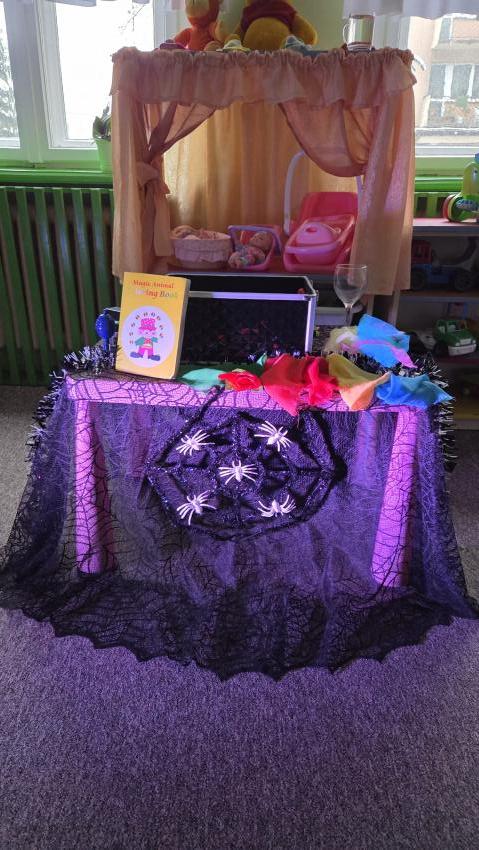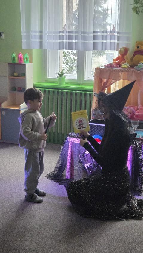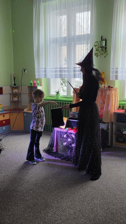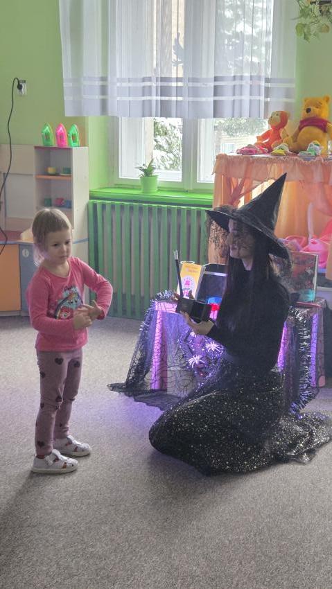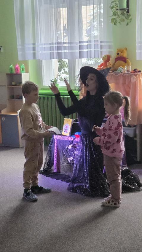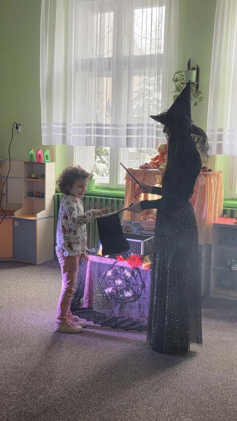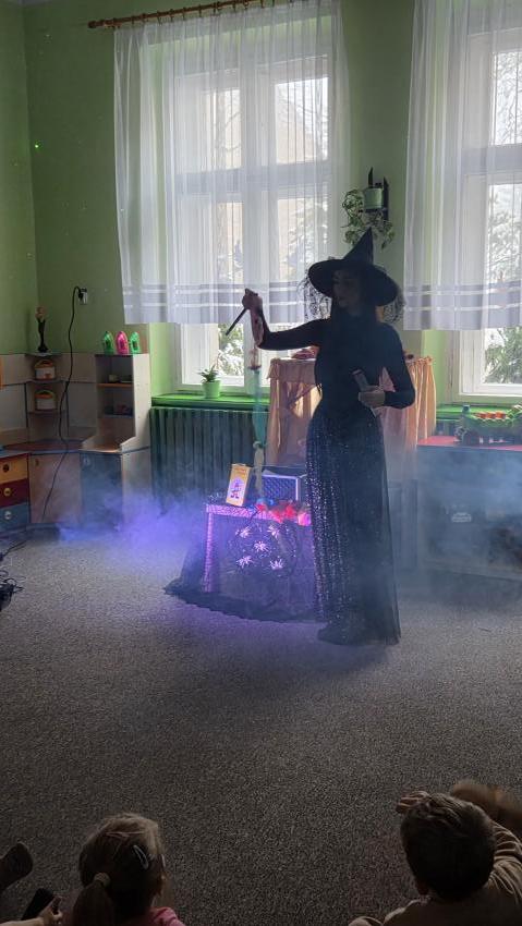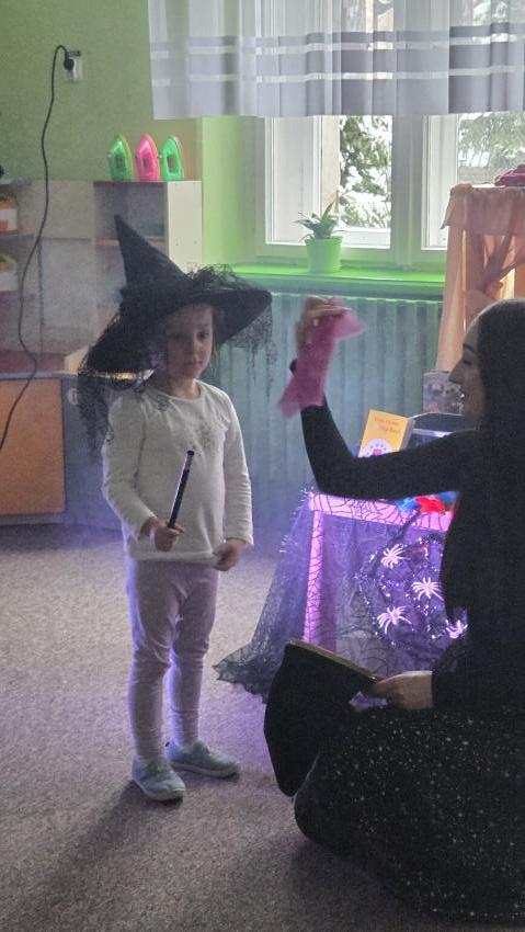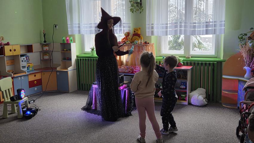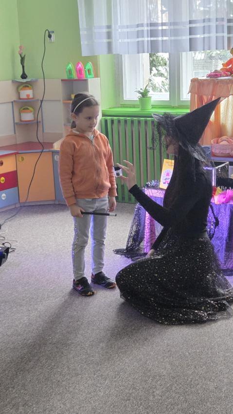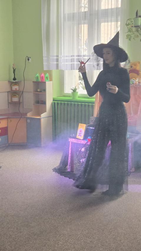 Dnia 21.11.2025 r. do naszego przedszkola przybył tajemniczy gość. Tym gościem okazała się czarodziejka Aleks, która zabrała nas do świata czarów i magii , dzięki temu przedszkolaki miały możliwość nauczyć się tajemniczych zaklęć. Podczas występu nie zabrakło też chętnych i odważnych ochotników, którzy pomagali czarodziejce w jej pokazie i sami czarowali.Wszystkim dzieciom bardzo podobały się niesamowite sztuczki i czary.Wizyta Magika w przedszkolu to wyjątkowe i pełne magii wydarzenie, które z pewnością zostanie w pamięci dzieci na długo.