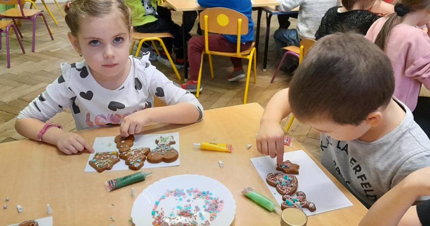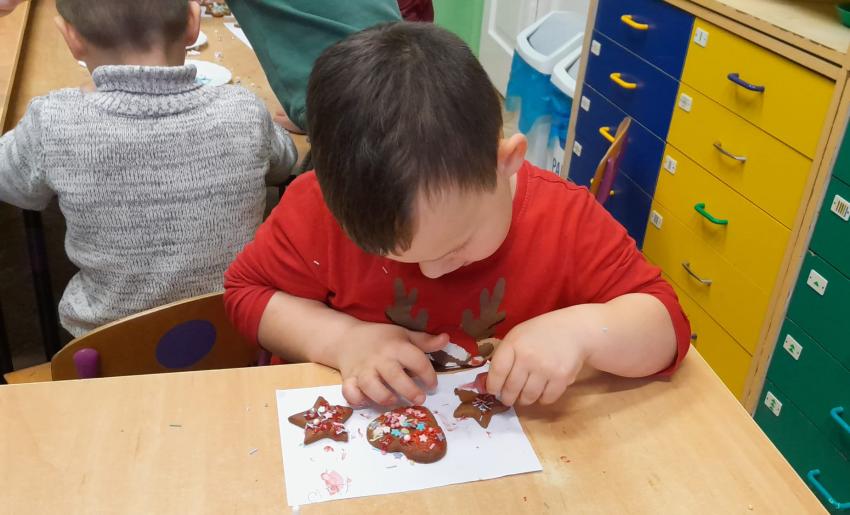 Przedszkolaki uczestniczyły w warsztatach pieczenia świątecznych pierników. To wspaniała przedświąteczna atrakcja integrująca nas wszystkich. Wykrawanie różnych kształtów - choinki, ciasteczka, bałwanki czy gwiazdeczki, ozdabianie kolorowymi lukrami, ozdobami oraz zapach wypiekanych pierników przybliża nas do zbliżających się świąt Bożego Narodzenia i budowania świątecznej atmosfery.